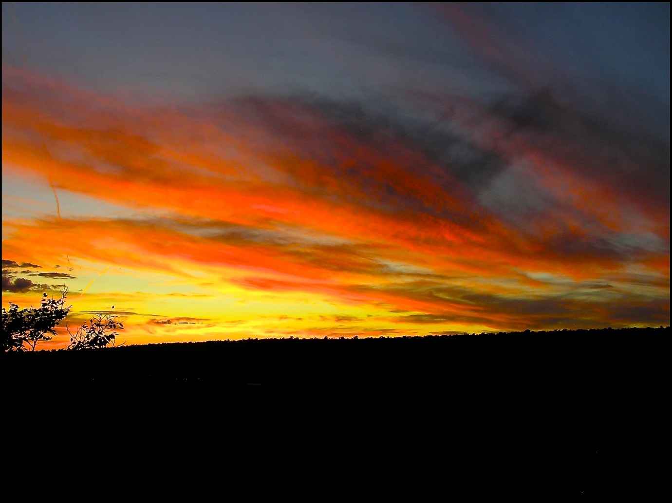 Purple lilies, orange sunrise,